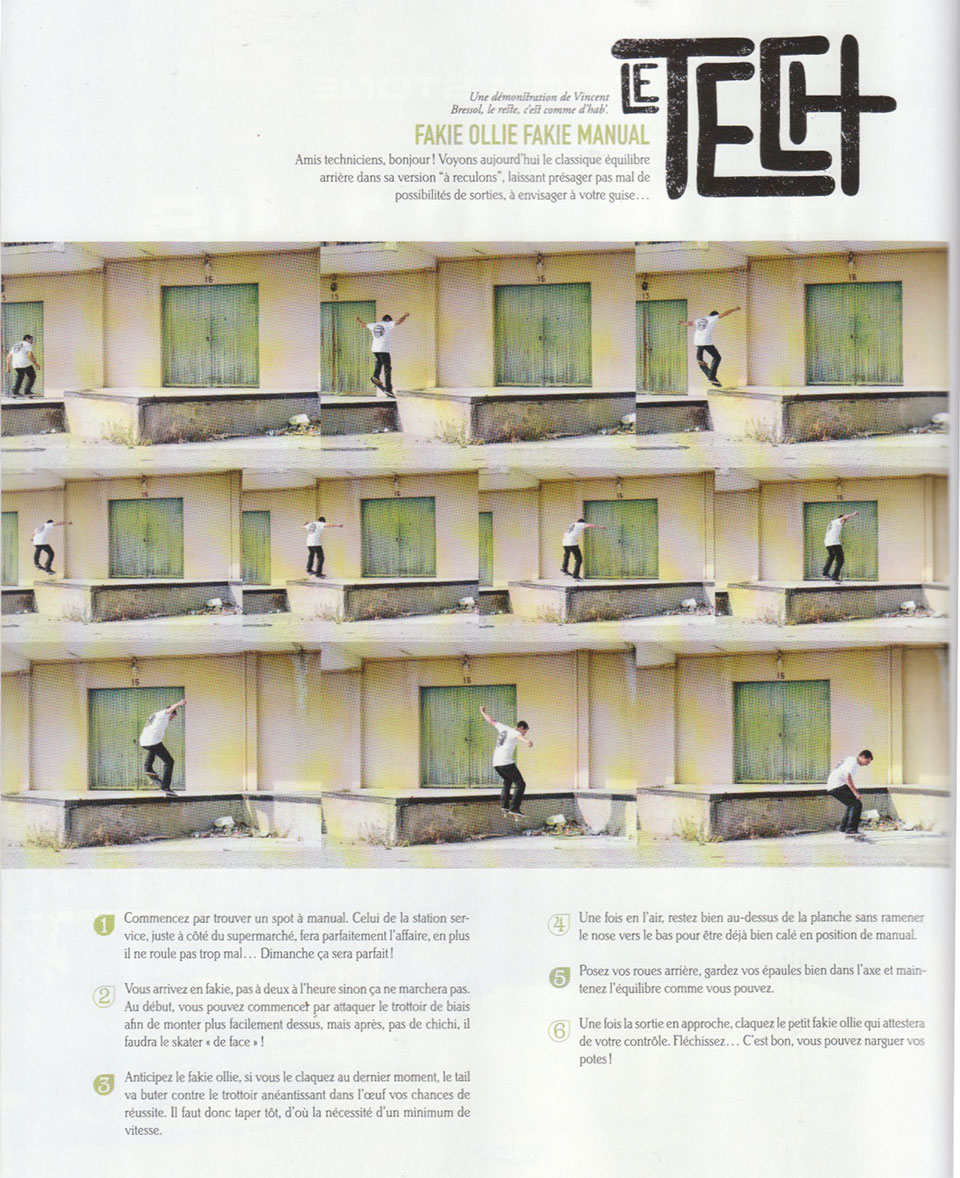 Bresse, keeping it steady in the last issue of Sugar Magazine from France in a trick tip sequence of one of his classic skills : fakie manuals. vincent bressol manual
